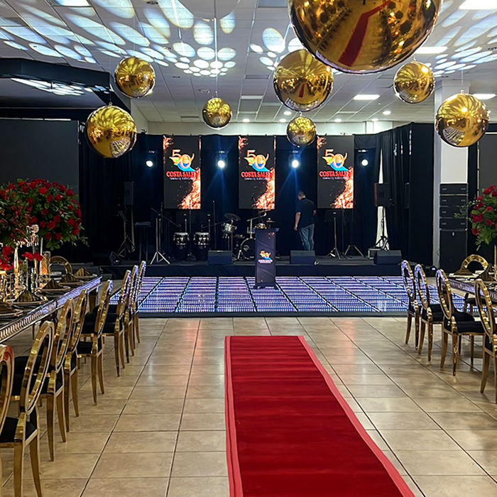 Transformamos cada celebración en una experiencia única e inolvidable. Contamos con tres amplios salones, que pueden utilizarse de manera individual o combinados, con capacidad para recibir hasta 1,500 personas. Además, disponemos de amplio estacionamiento y planta eléctrica, garantizando comodidad y seguridad para todos tus invitados.